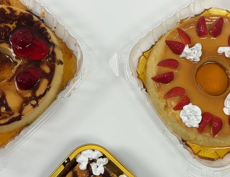 Explore our mouthwatering tres leches and flans, perfect for restaurants and get togethers.